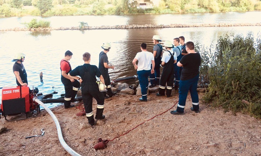 Die Gruppe 1 unserer Wehr führte eine Übung an der neuen Mainbrücke in Marktheidenfeld durch. Angenommen wurde ein Flächenbrand unterhalb des städtischen Bauhofs. Die Wasserentnahme erfolgte mittels Saugleitung aus dem Main.