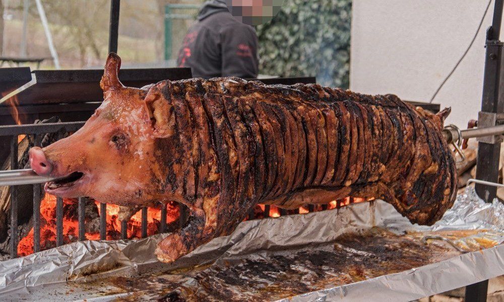 Am 17.02.2018 war es soweit, die letzte Feier im alten Bürgerhaus hat stattgefunden. Hierzu haben sich die Glasf’lder Ortsvereine nochmal was ganz Besonderes ausgedacht. Es wurde live ein Spanferkel im Schulhof gegrillt. Hierfür wurde vom Köhlerverein Holz für den Grill gesponsert und Frühs um 10 Uhr mit den Aufbauarbeiten begonnen. Das Spanferkel oder besser die „Spansau“ wurde auf den Grill gehängt und drehte sich ab 12 Uhr neben dem Feuer. Unter der Beobachtung einzelner Vertreter der Glasf’lder Ortsvereine wurde die Schwarte immer knuspriger und der Hunger immer größer. Durch geschickte Überredungskunst durften manche bereits vor dem großen Essen ein Stück knusprigster Schwarte probieren und waren begeistert.